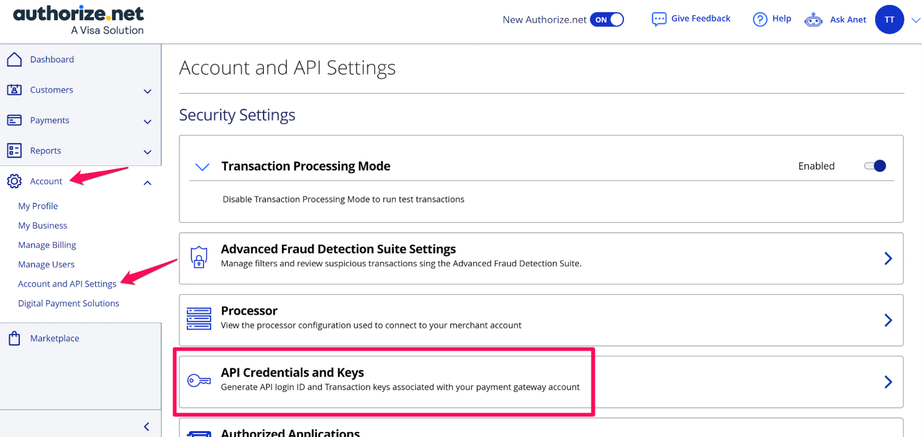 Enable Authorize.Net