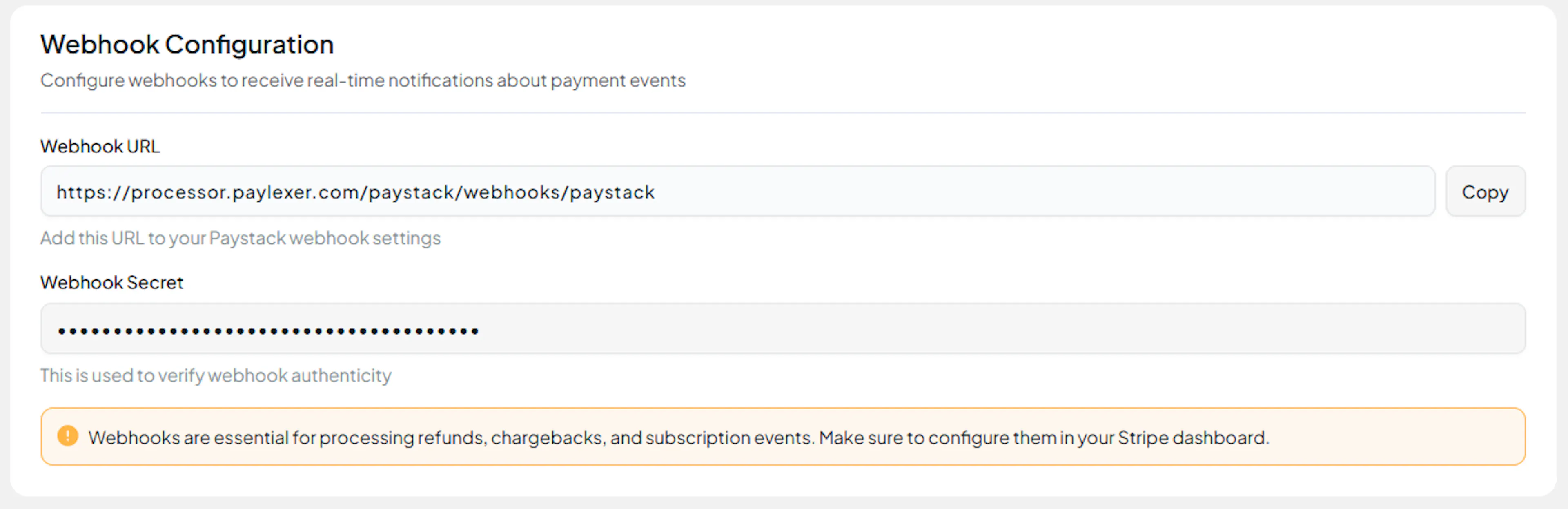 Paste the Webhook Secret into PayLexer, then click Save Configuration.