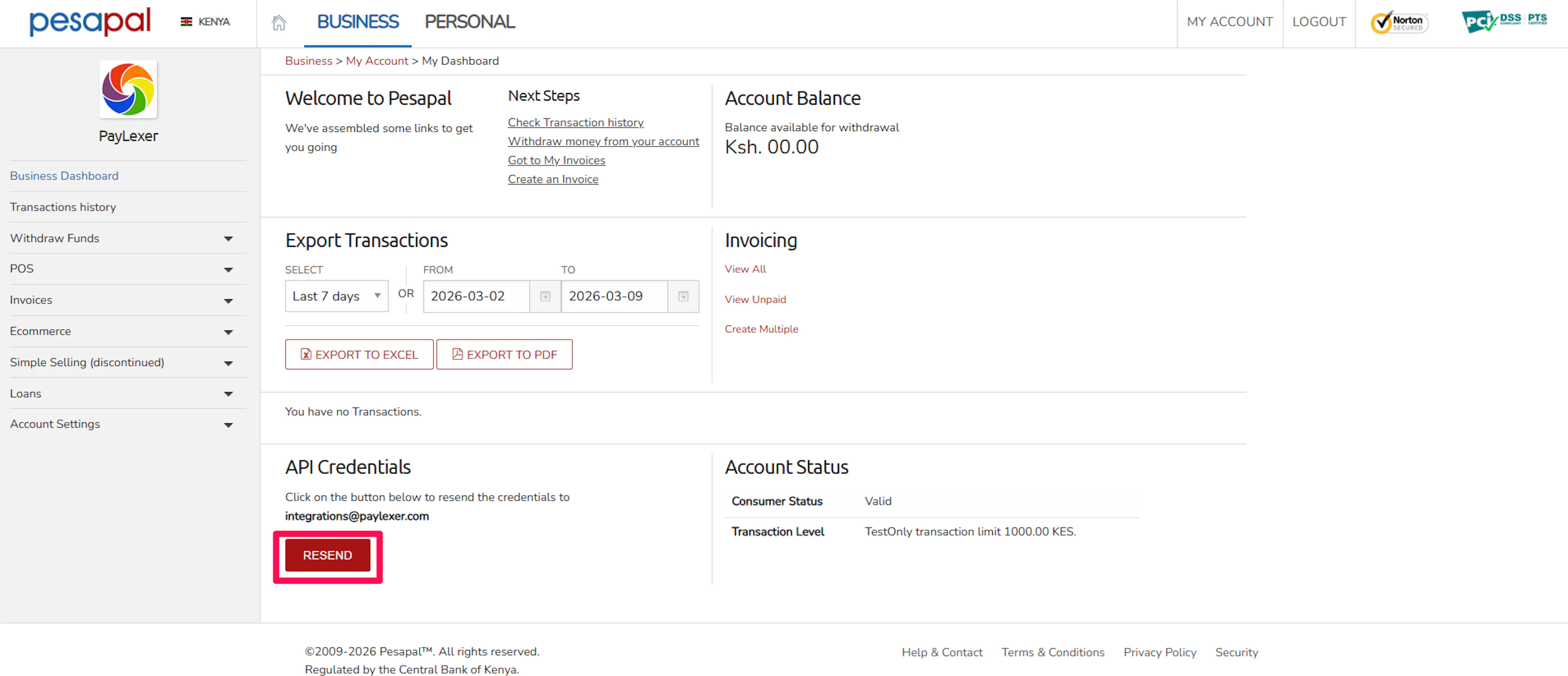 Log in to your PesaPal Dashboard.