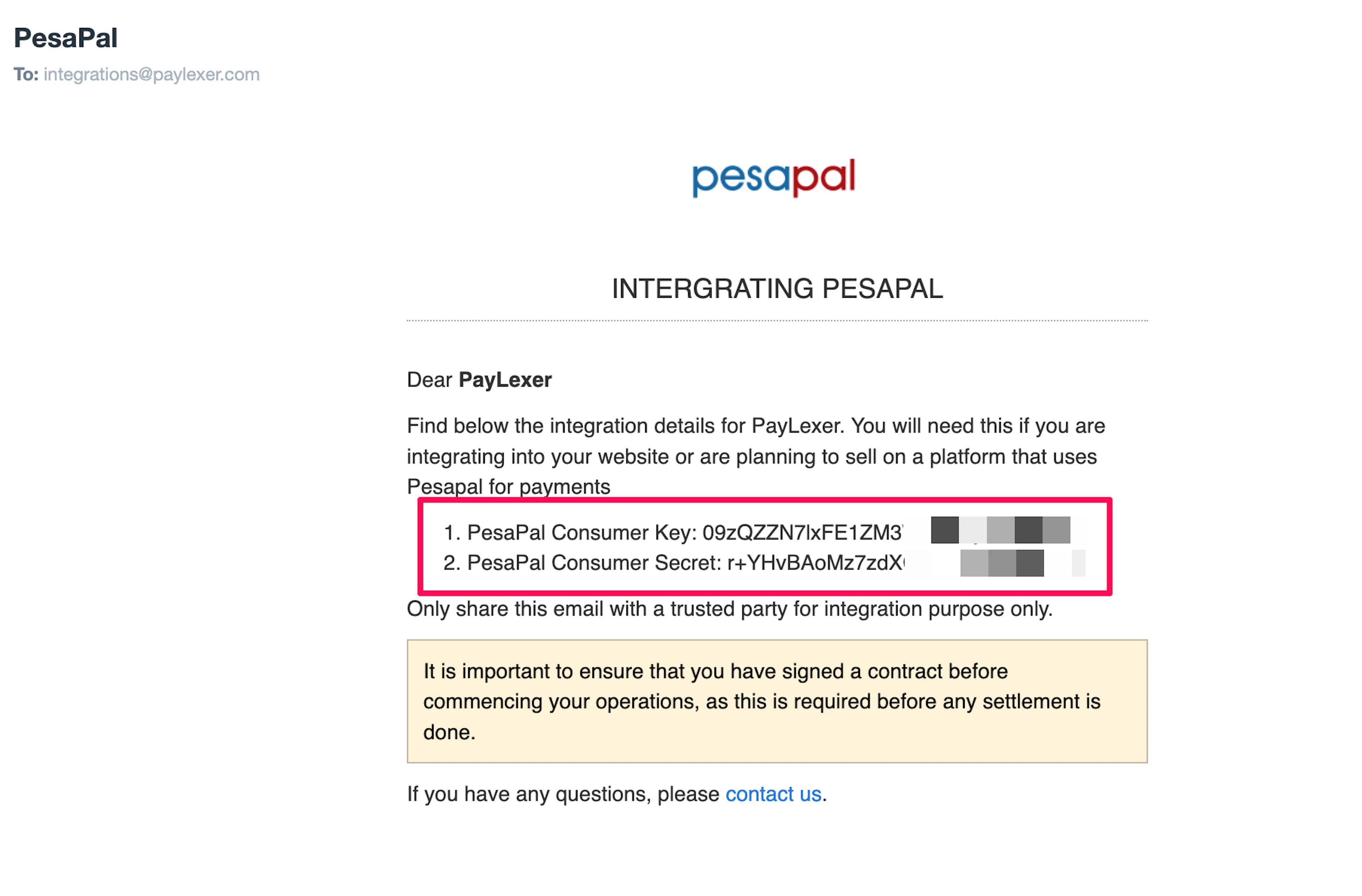 You need a Consumer Key and Consumer Secret from PesaPal for this integration.