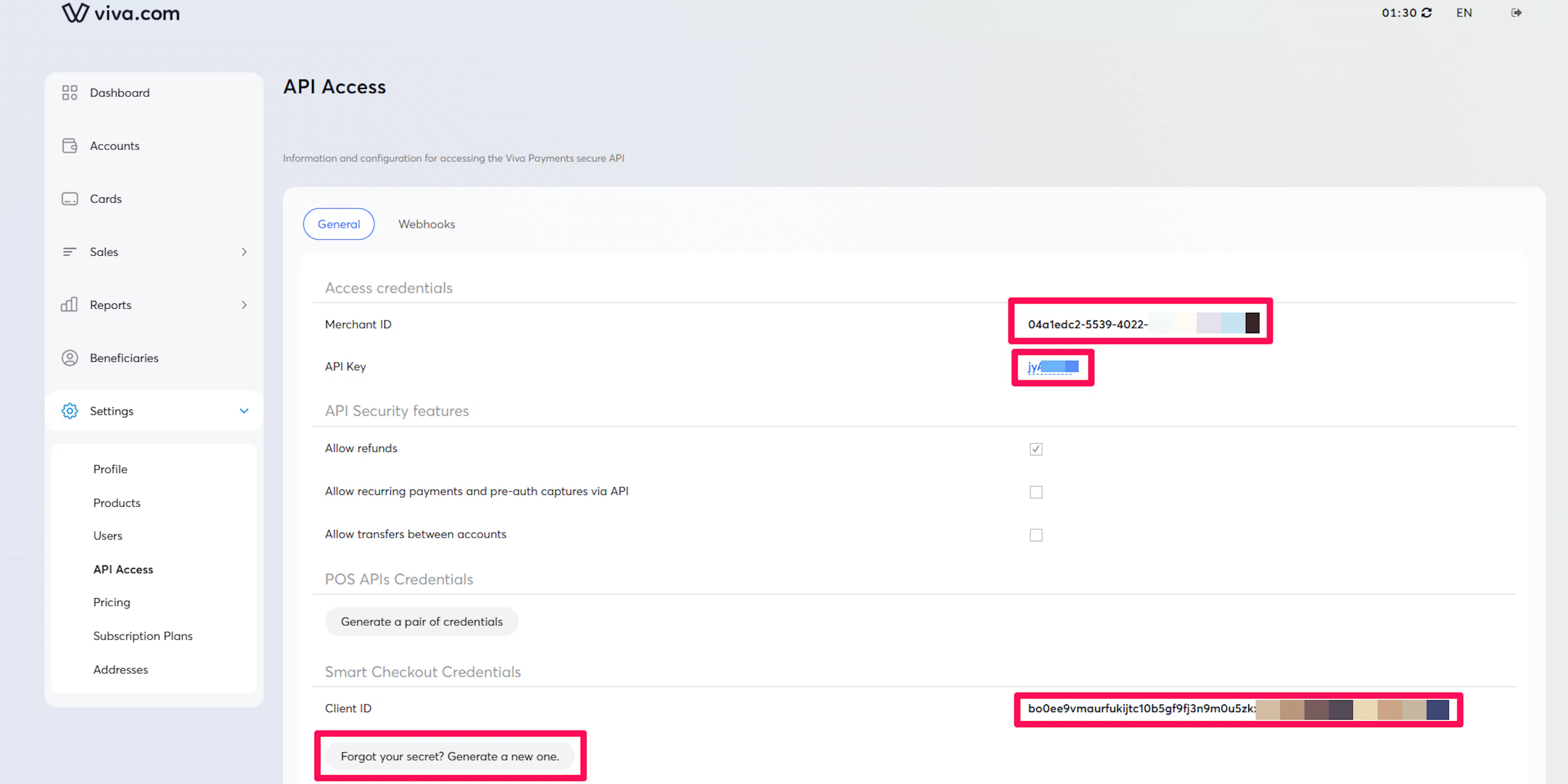You need a Client ID, Client Secret, and Merchant ID from Viva for this integration.