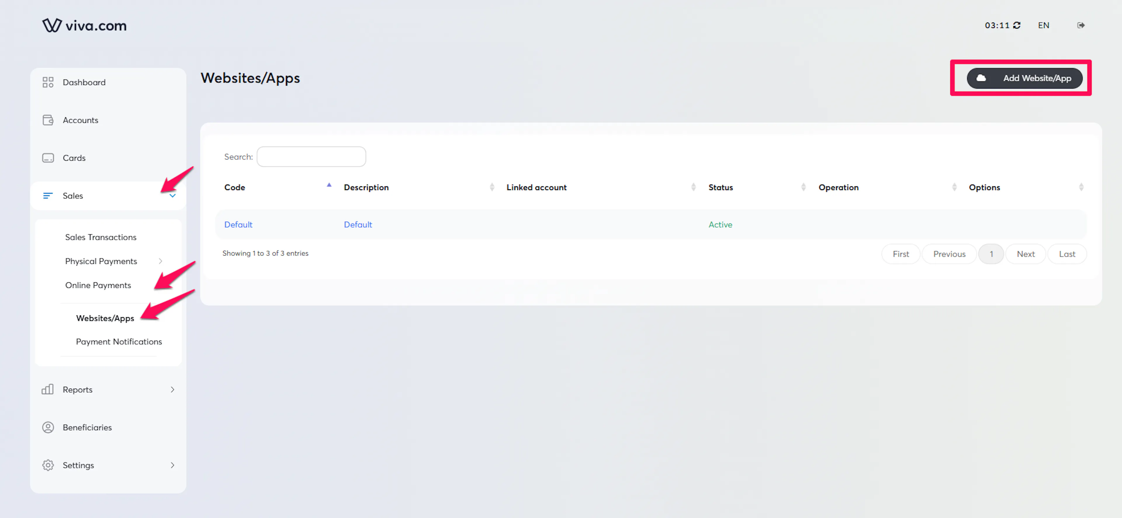 To get the Source Code, go to** Sales - Online Payments - Websites/Apps** and click on Add Websites/App