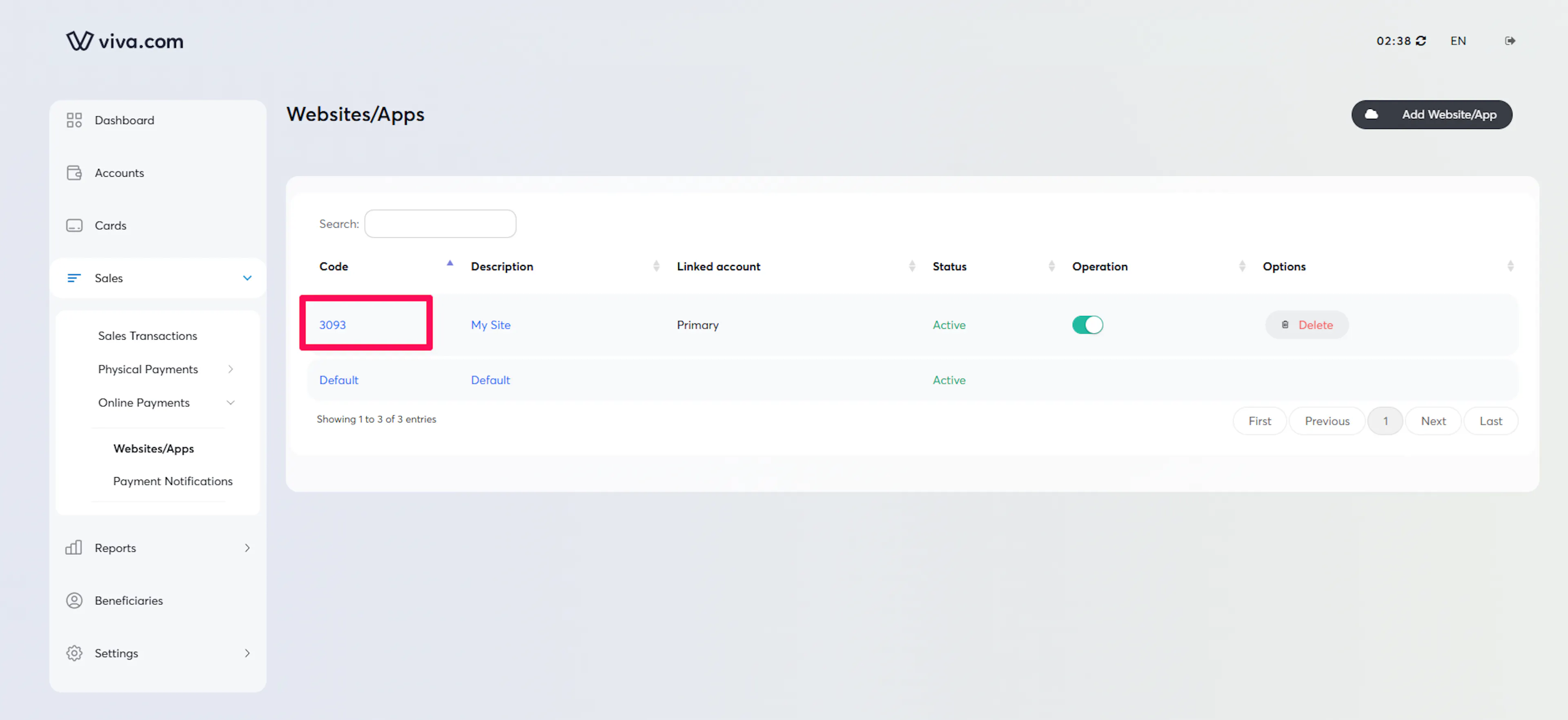 Log in to your Viva Dashboard.